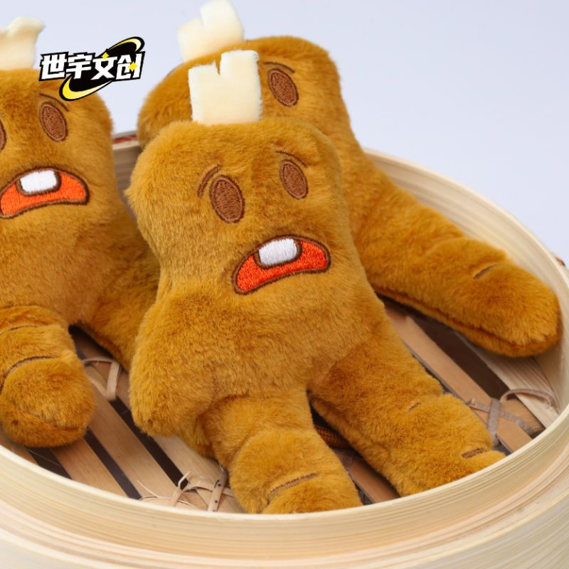Inspired by the classic Cantonese style dim sum ‘Chicken Feet’. It restores the classic pleated outer skin with short velvet fabric and cute-bouncing meaty shape, embedded movable skeleton 360° twisting at will.