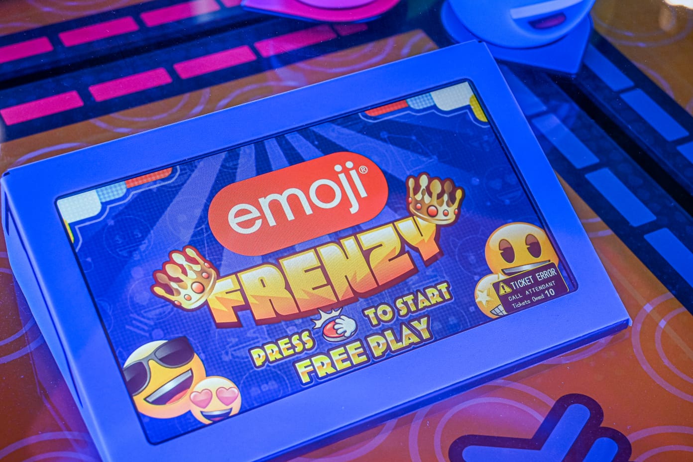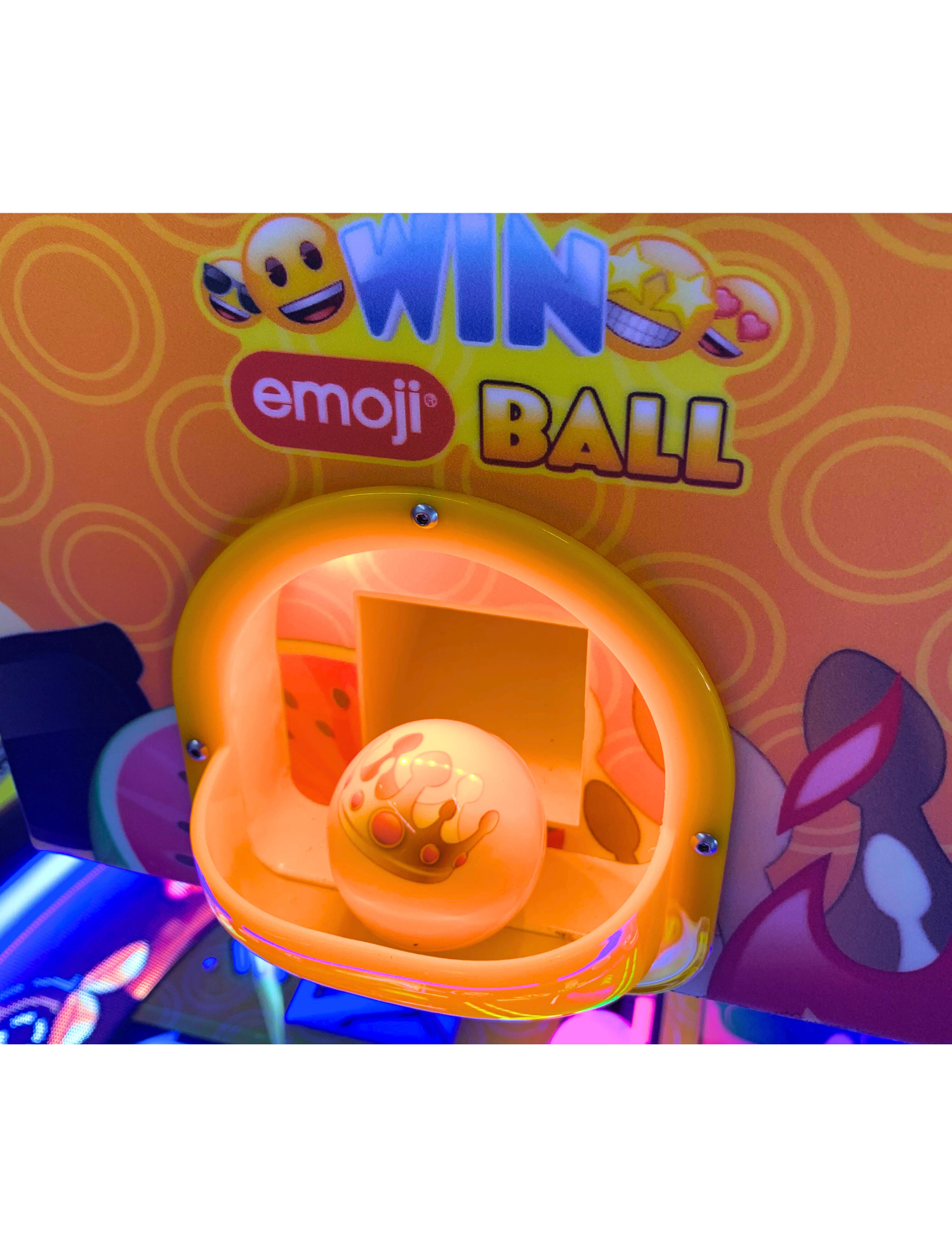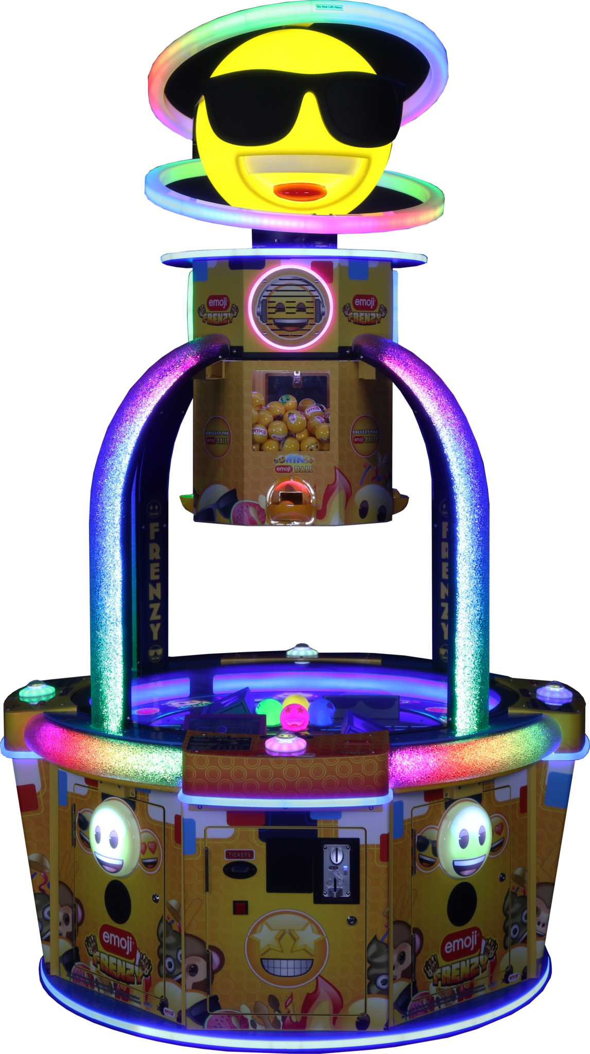 The rotating marquee at the top adds an eye-catching spectacle, enhancing the overall visual impact and making Emoji Frenzy an attraction that is impossible to ignore.