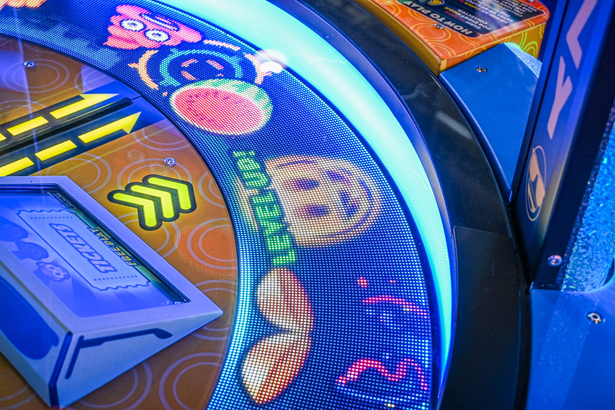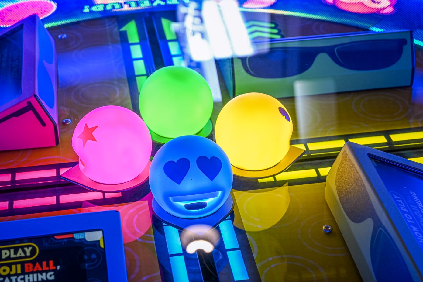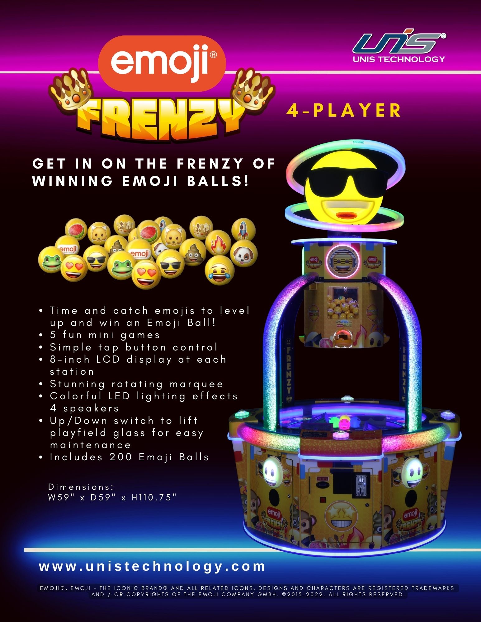 The rotating marquee at the top adds an eye-catching spectacle, enhancing the overall visual impact and making Emoji Frenzy an attraction that is impossible to ignore.