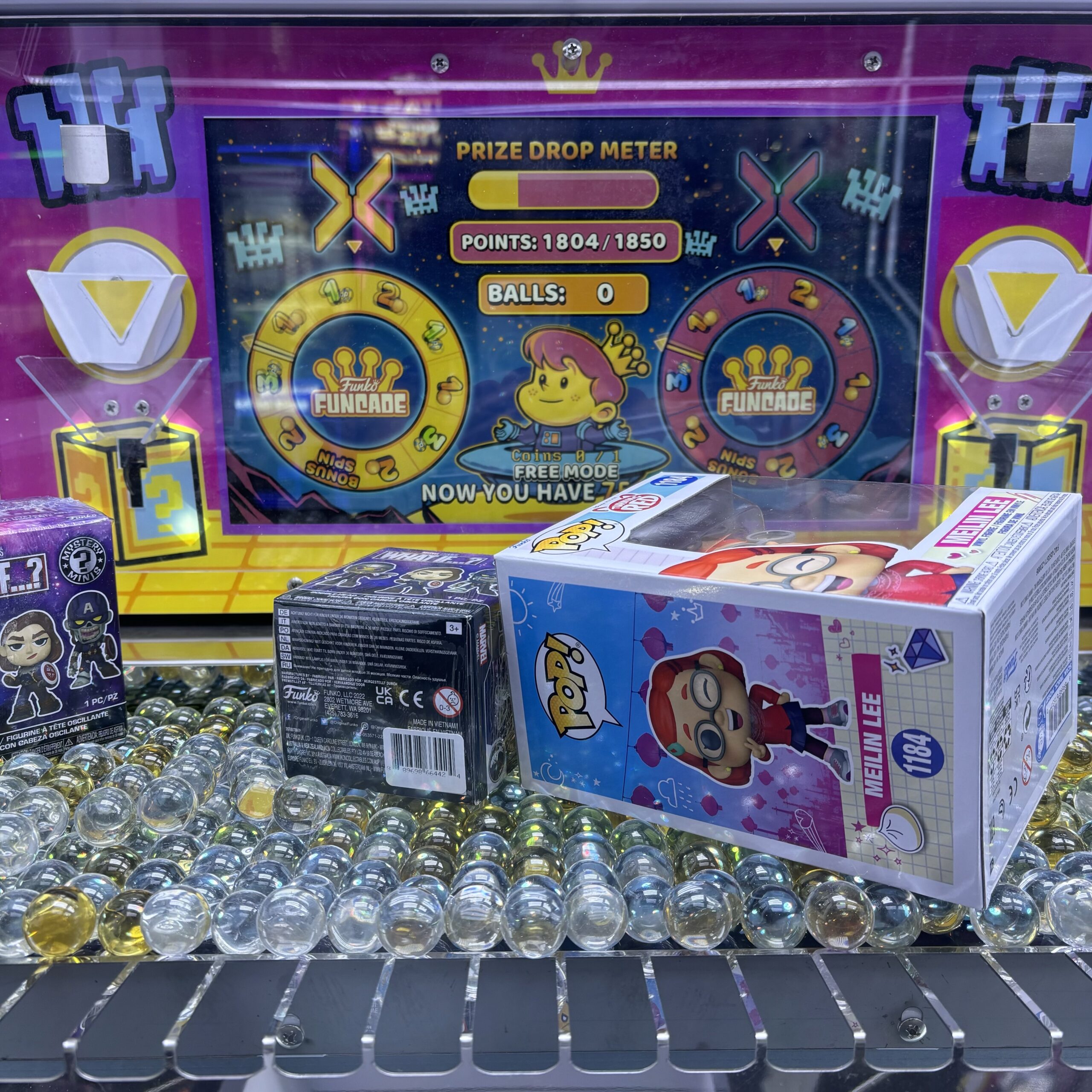 - Exclusively uses boxed Funko collectibles as prizes