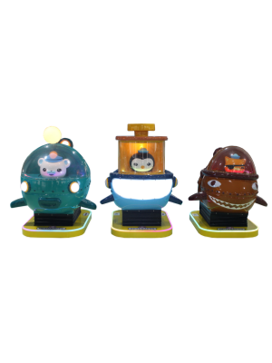 Captain Barnacles Bear‘s submarine lets kids assume command using a joystick and button, embarking on an exciting journey alongside the pack’s leader in his distinct blue-green submersible.