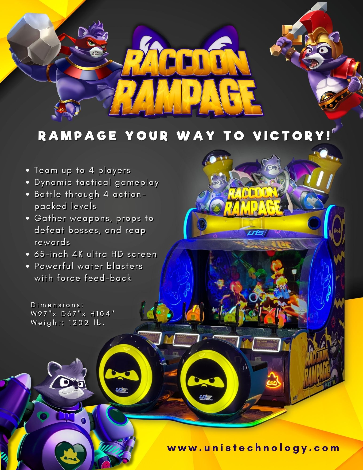 Straight forward gameplay and simple controls, Raccoon Rampage is designed to entertain players of all ages. It’s the perfect addition to any location.