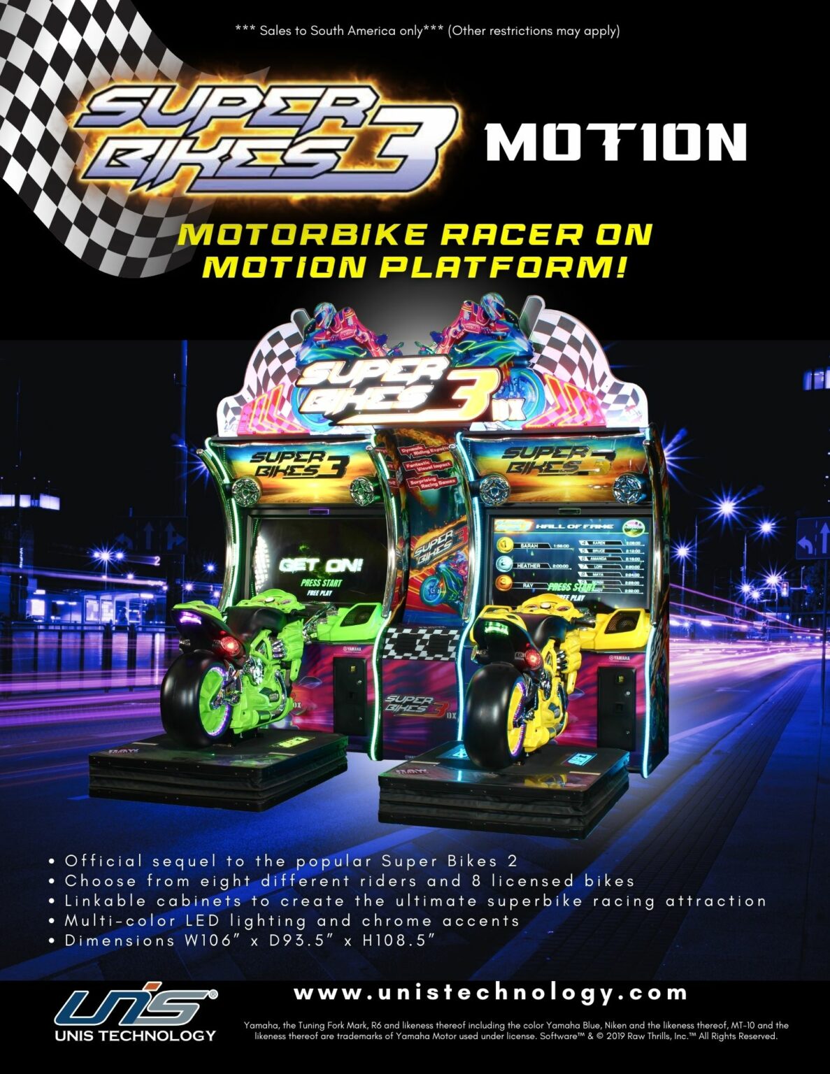 - Linkable cabinets to create the ultimate superbike racing attraction