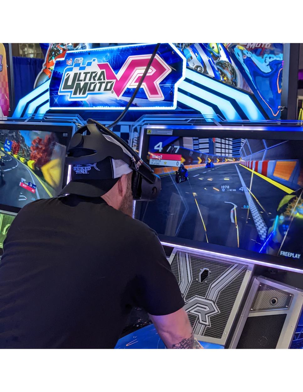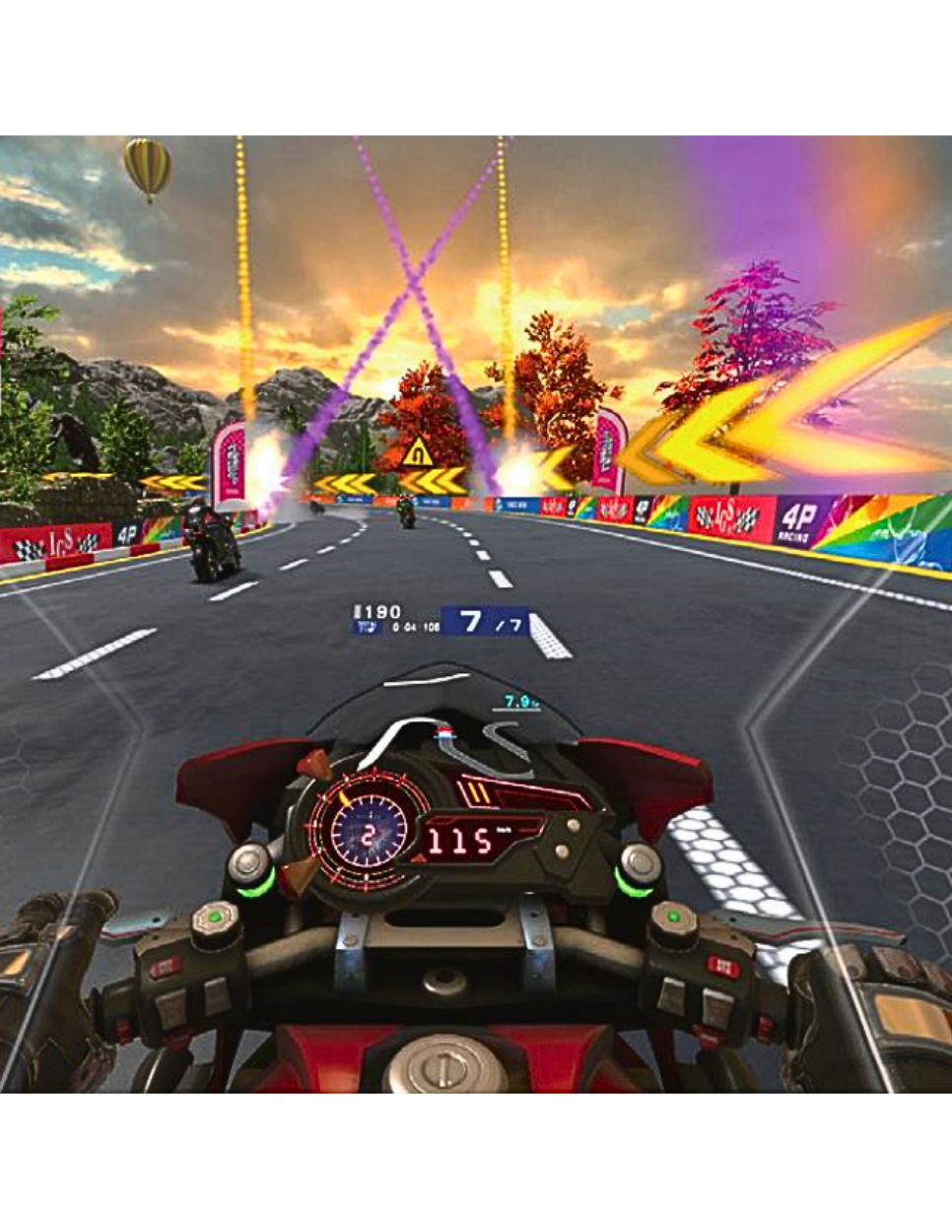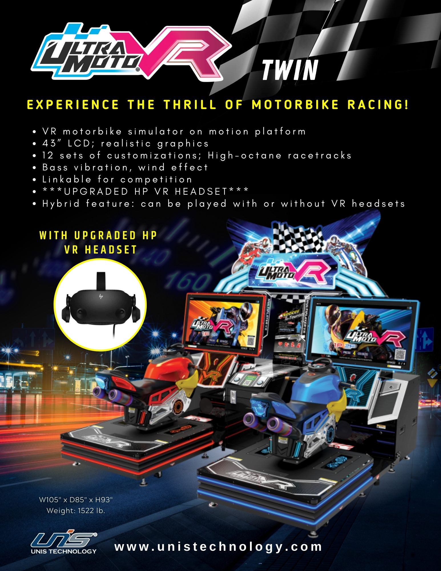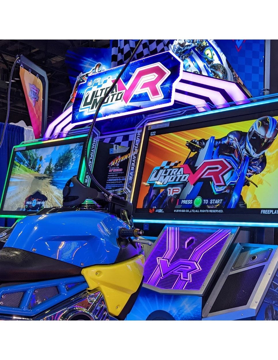 Ultra Moto VR takes fantasy motorbike racing to a whole new level with immersive game play, realistic graphics displayed on 43” LCD and numerous high-octane racetracks. Get ready for an adrenaline-pumping ride that brings the thrill of realistic racing to life in a virtual environment.