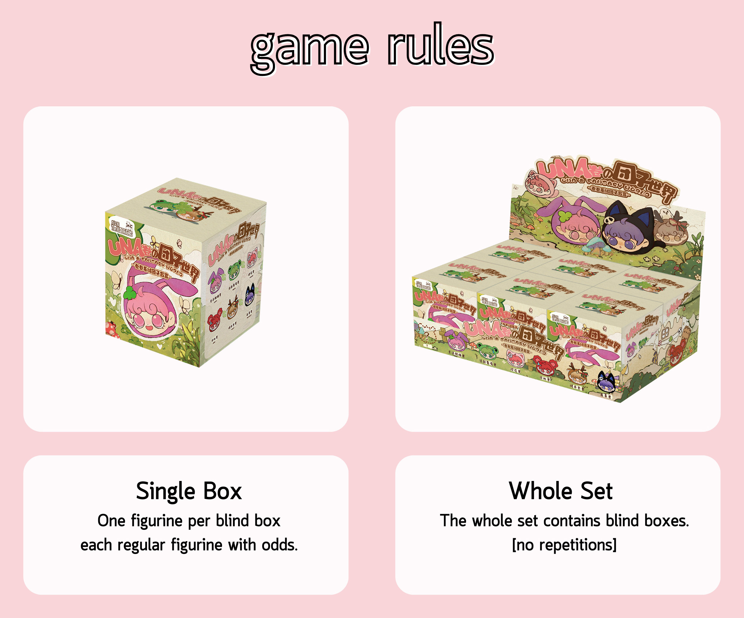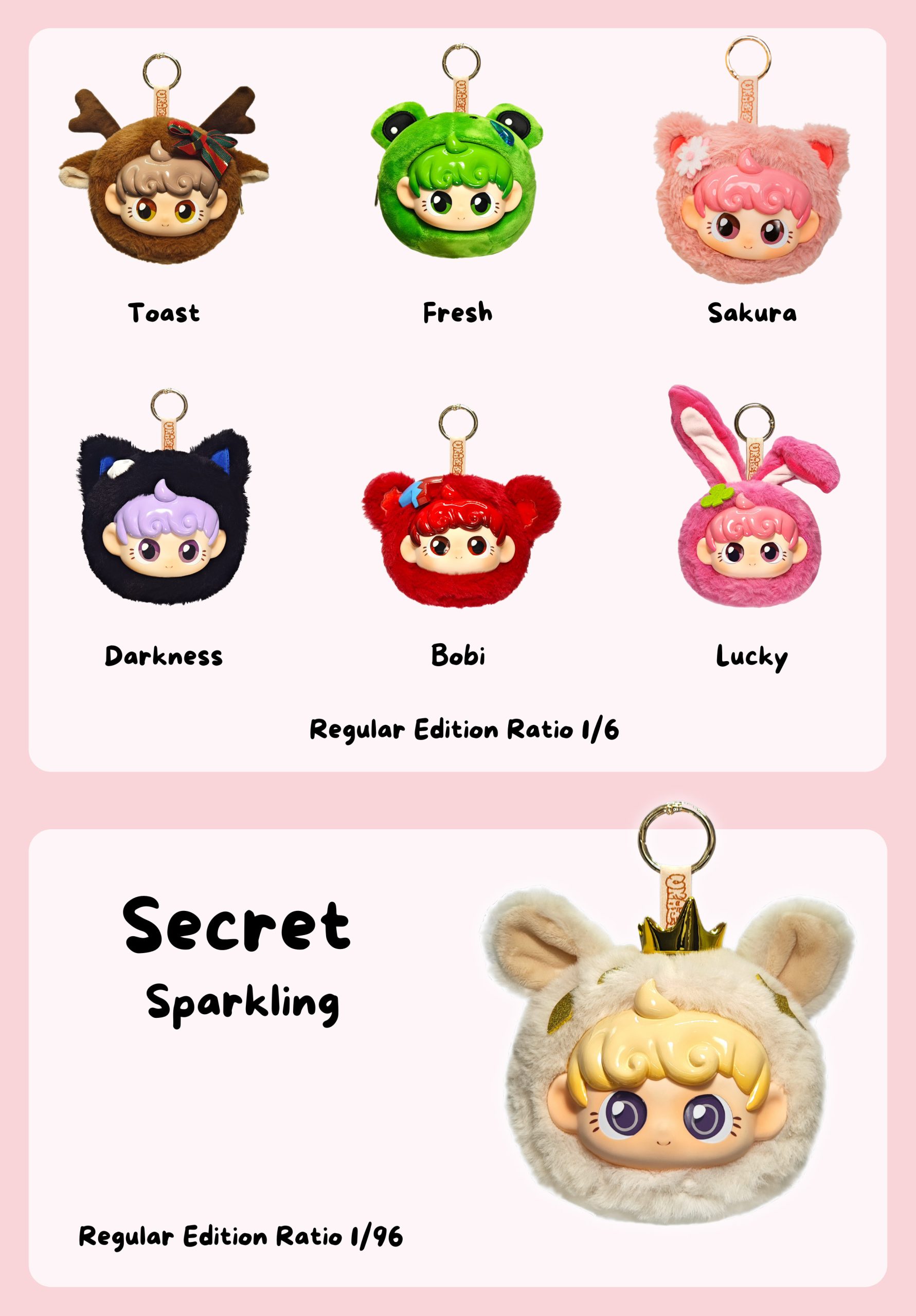 There are six regular edition figures and one secret edition figure, each with a unique theme. Each regular edition figure has a probability of 1/6 to be obtained and secret edition has a very low probability of 1/96.